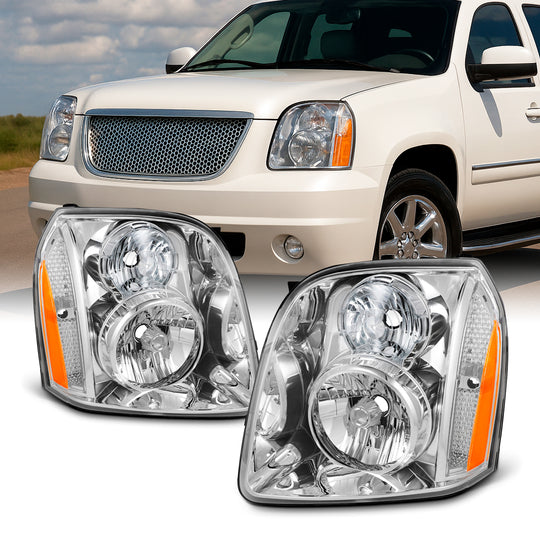 Regular price $168.99This is a 100% brand new pair of Headlights Replacement Assemblies in Polished Chrome Housing With Crystal Clear Lens Compatible With: 2007-2014 GMC Yukon 2007-2014 GMC Yukon XL 1500/ 2500 Manufacturer Part Number: GM2503318, GM2502318_13 14,15861025,... -