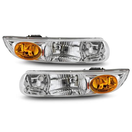 AKKON - Fits 2000 2001 2002 Saturn SC1 SC2 Coupe [Halogen Type] Chrome Headlights Pair Driver Left + Passenger Right
