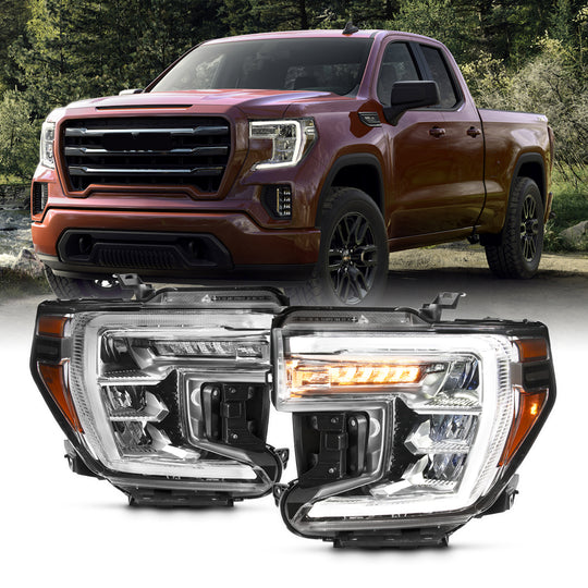 Regular price $389.99This is a 100% brand new pair of Headlights Replacement Assemblies in Chrome Housing With Clear Lens Compatible With: 2019-2022 GMC Sierra Compatible w/LED Turn Signal Headlight Models Only Compatible 2019 Sierra w/ New Body Style...