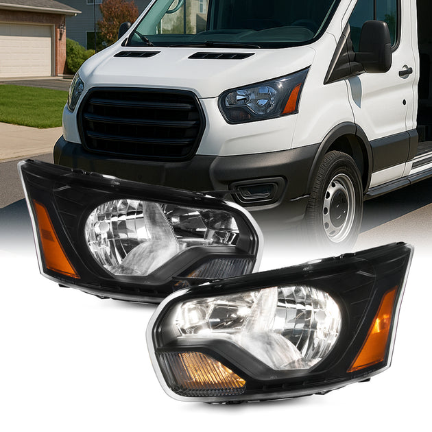 AKKON - Fit 2015-2023 Ford Transit T150 T250 T350 15-23 Halogen Type Headlight Headlamps OE Style Black Pair
