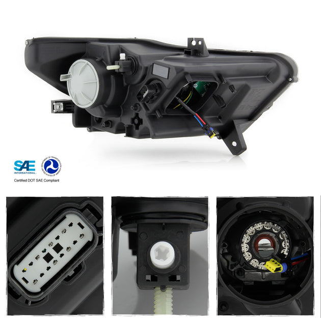 AKKON - Fits 2015 2016 2017 Ford Mustang [HID/Xenon] DRL LED Tube Projector Black Headlight Driver Left Side Replacement