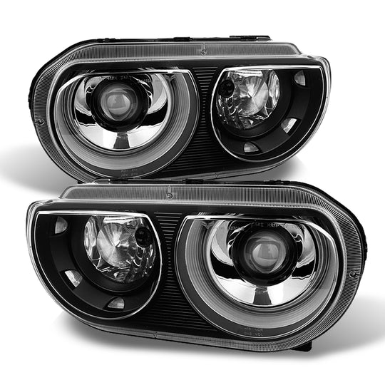 Regular price $136.99This is a 100% brand new pair of Headlights Replacement Assemblies in Midnight Black Housing With Crystal Clear Lens Compatible With: 08-14 Dodge Challenger Model With OEM Xenon HID Headlight Only ***NOT COMPATIABLE WITH HALOGEN HEADLIGHT... -