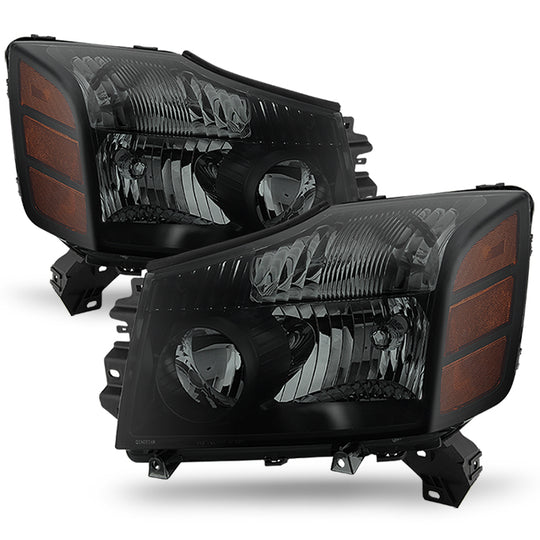 AKKON - For Black Smoke 2004-2015 Titan Pickup Truck 04-07 Armada Headlights Front Lamps Direct Replacement Pair