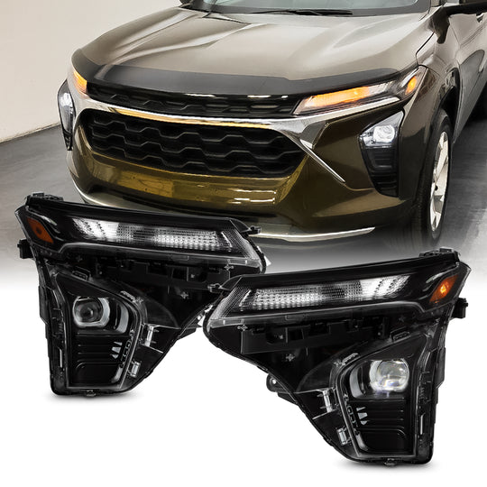 AKKON- Fits 2024-2025 Chevy Trax LS / RS [LED High-Low Beam] Projector Black Headlights Pair Left+Right w/Halogen Signal