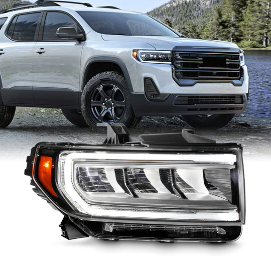 AKKON - Fits 2020-2023 GMC Acadia AT4 [Full LED] Chrome Headlight w/ Turn Signal Switchback Running Lamp Passenger Right