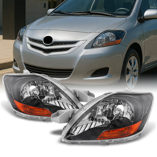 AKKON - For Toyota Yaris 4 Doors Sedan Chrome Headlights Driver and Passenger Side Replacement Pair Set