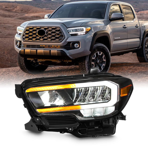 AKKON - Fits 2020-2022 Toyota Tacoma Pickup Truck Full LED DRL Running Turn Signal [Chrome Trim] Headlight Driver Left