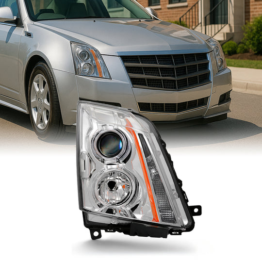 Regular price $98.99This is a 100% brand new Passenger (Right) Side Headlight Replacement Assembly in Polished Chrome Housing With Crystal Clear Lens Compatible With: 2008-2014 Cadillac CTS Models ****NOT Compatible with Factory Xenon HID Models*** Manufacturer Part Number:... -