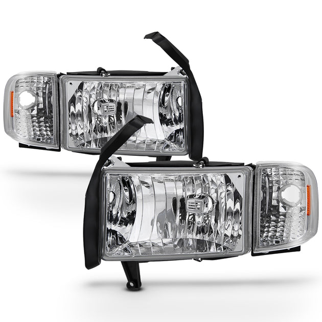AKKON - For 94-01 Dodge Ram 1500 2500 3500 Chrome Headlights w/Corner Signal Lamps Left+Right Replacement