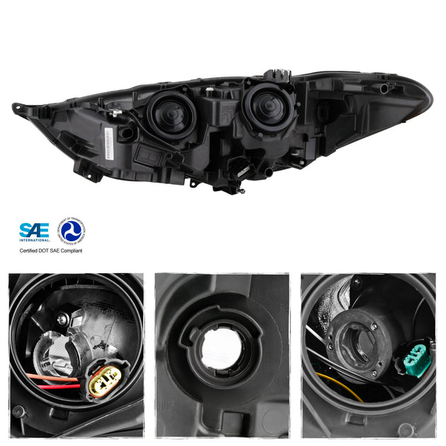 AKKON - Fits 2017-2020 Ford Fusion Halogen w/ LED DRL Model Projector Chrome Headlight Passenger Right Side Replacement