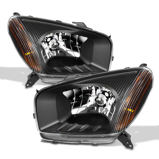 AKKON - For 01-03 Toyota RAV4 Black Headlights Head Lamps Driver and Passenger Side Replacement Pair Set