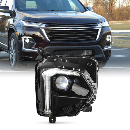 AKKON - Fits 2022-2023 Chevy Traverse [FULL LED] Projector Black Headlight Passenger Right w/ DRL Running Tube Signal