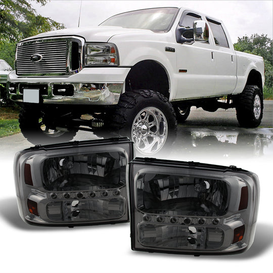AKKON - For Ford F250/F350 Superduty Excursion OE Replacement Smoke Headlights Driver/Passenger Headlamps Pair