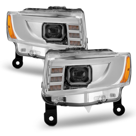 AKKON - Fit 2014 2015 2016 Jeep Grand Cherokee [Full LED] Tube Bar DRL w/ Sequential Signal Projector Headlights Chrome Housing Direct Replacement Headlamps