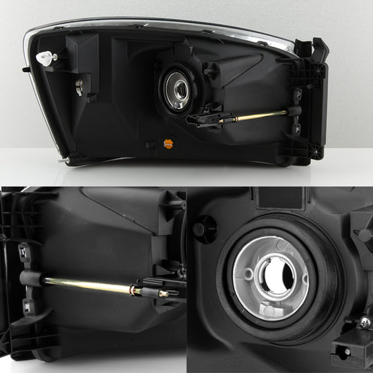 AKKON - For 06-08 Ram 1500 06-09 Ram 2500 3500 Pickup Truck Black Headlights Front Lamps Direct Replacement