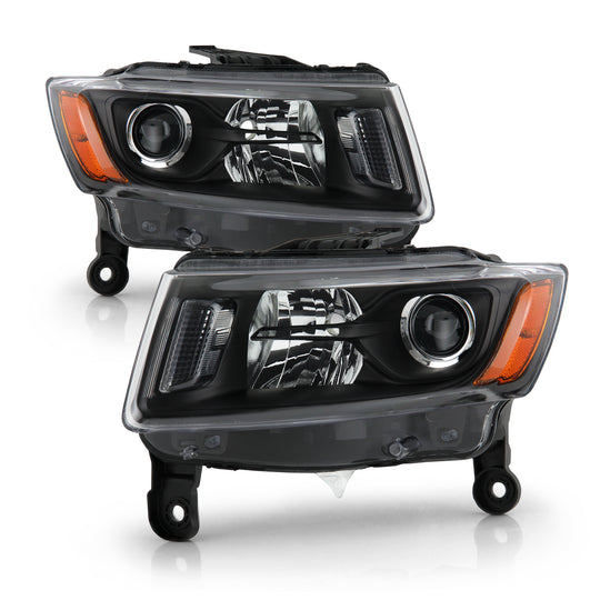 Regular price $148.99This is a 100% brand new pair of Replacement Headlights in Black Housing Clear Lens Compatible With: 2014-2016 JEEP Grand Cherokee w/ Halogen Type Headlight Moels ATTN: Compatible w/ Factory Halogen Type Headlight Models ATTN: Not... -