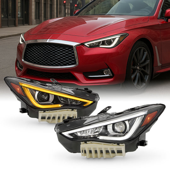 Regular price $968.99SKU: HD-JH-IQ6017-AFS-LED-OE-L_HD-JH-IQ6017-AFS-LED-OE-R This is a 100% brand new pair of Replacement Headlights in Black Housing with Clear Lens Compatible With: 2017-2022 Infiniti Q60 with AFS Full LED Headlight Models ATTN: Compatible with AFS Full LED Headlight... -