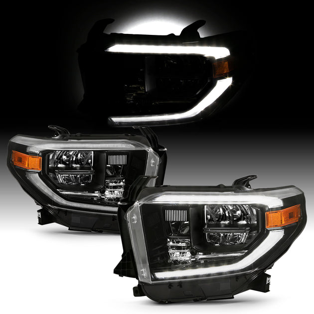 AKKON - Fits 2018 2019 2020 Toyota Tundra Pickup w/ DRL LED [Tube Bar] Black Headlight Headlamp Driver Left Side Replacement