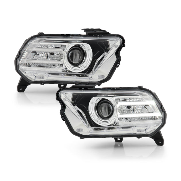 AKKON - For 2010-2014 Ford Mustang LED Light Bar DRL Chrom Housing Projector Headlights Left + Right