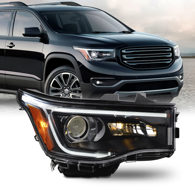 AKKON - Fit 2017 2018 2019 GMC Acadia 17-19 w/LED DRL Halogen Projector Headlight Black Houing OE Style Passenger Right