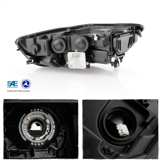 AKKON - Fits 2009-2017 FX35 FX37 FX50 QX70 [HID Type] w/Sport Package w/o AFS Black Headlight Passenger Right Side