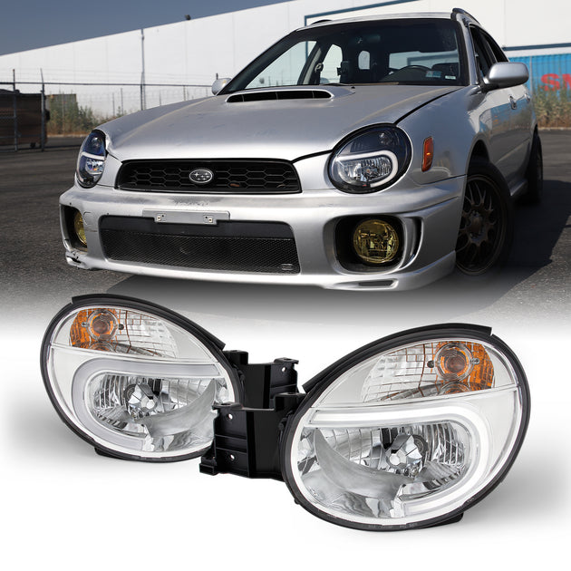 AKKON - For 2002 2003 Subaru Impreza Outback RS TS WRX (Halogen Type) LED Light Tube DRL Chrome Housing Headlights Lamps