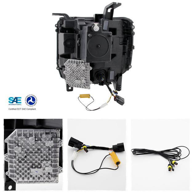 AKKON - For 2013-2015 Ram 1500 / 2500 /3500 OE Projector Chrome Headlights with LED DRL - Right Passenger Side