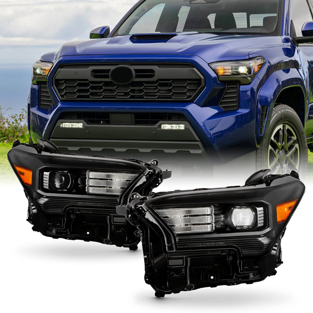 AKKON - Fits 2024-2026 Toyota Tacoma [LED Lo-Hi Beam] Projector Black Headlights Pair Left+Right w/ Halogen Turn Signal
