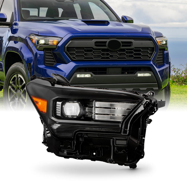AKKON - Fits 2024-2026 Toyota Tacoma [LED Lo-Hi Beam] Projector Black Headlight Driver Left Side w/ Halogen Turn Signal
