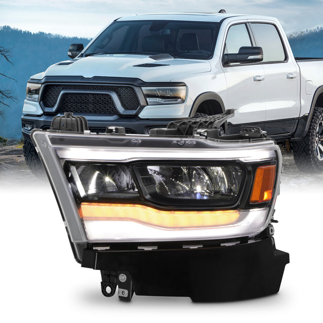 AKKON - Fits 2019-2023 Dodge Ram 1500 Full LED Black Bezels Headlight Driver Left Side w/ DRL Tube Turn Signal