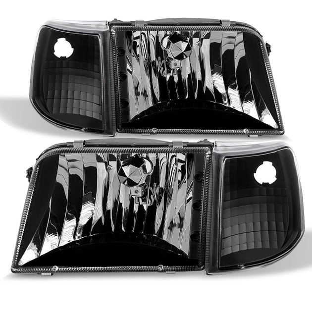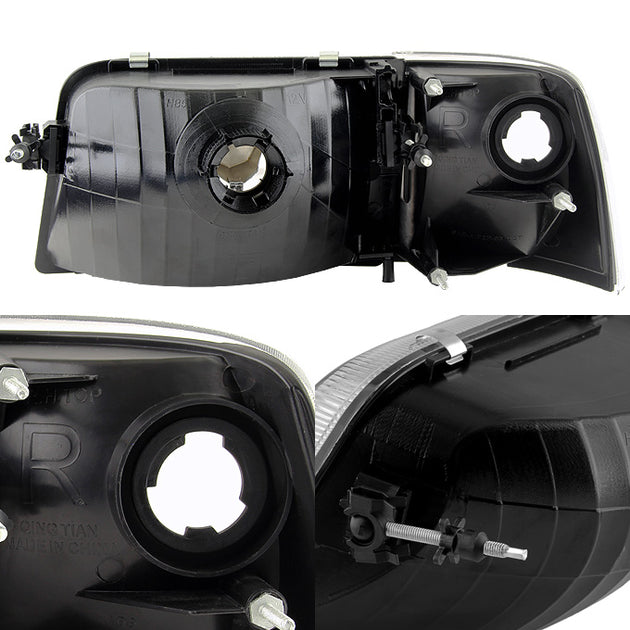 AKKON - For Black Bezel 93-97 Ford Ranger Pickup Truck Headlights Replacement + Corner Signal Light Lamps Set