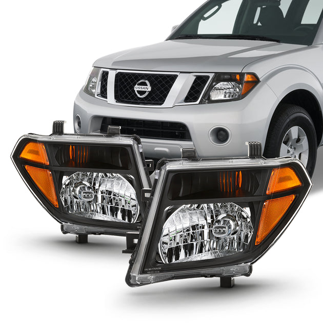 AKKON - Fits 2005-2008 Frontier 2005-2007 Pathfinder [Halogen Models] Black Headlights Replacement Left + Right Pair