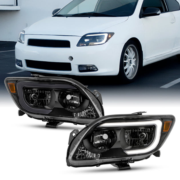 AKKON - Fits 2005-2007 Scion tC Black Headlights Pair Driver+Passenger w/ LED DRL Running Tube Bar Replacement