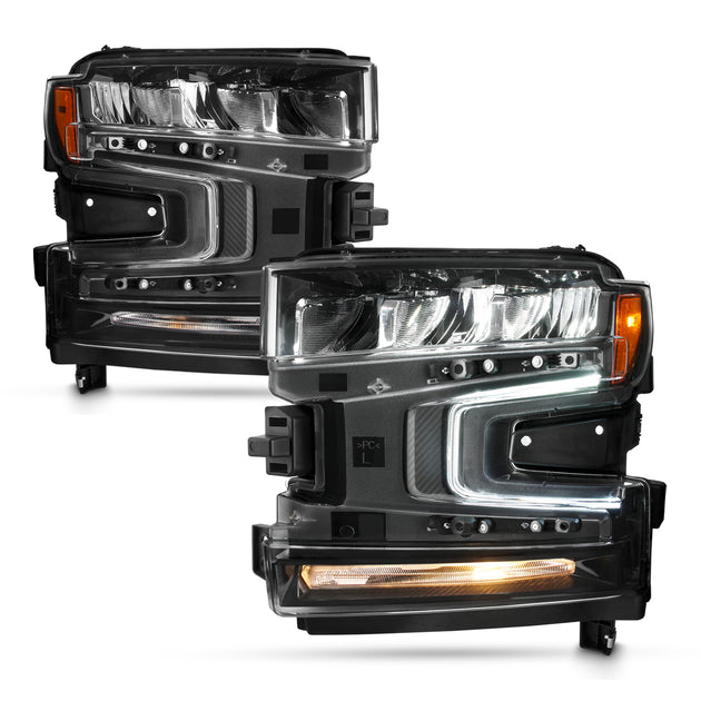 AKKON - Fits 2019 2020 2021 Chevy Silverado 1500 [LED High&Low Beam] DRL Black Headlights Pair w/ Halogen Turn Signal
