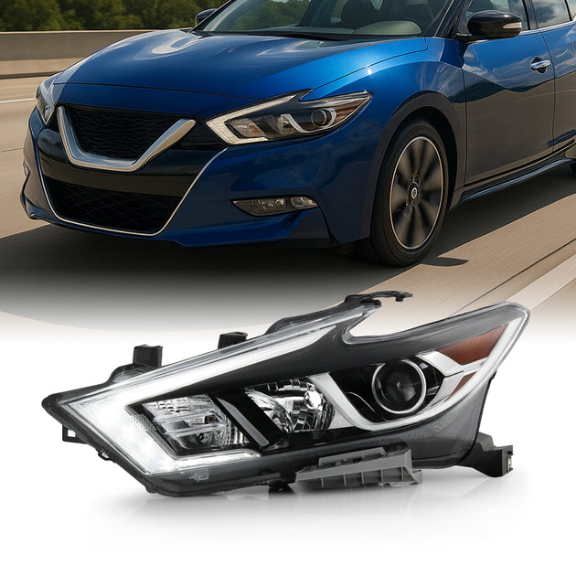 AKKON - Fit 2016-2018 Maxima S | SL | SV [Halogen Type] DRL LED Running Turn Signal Chrome Headlight Passenger Right Replacement