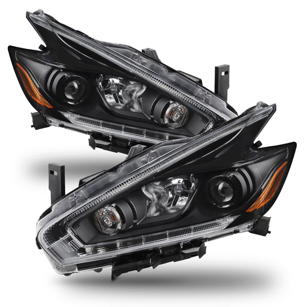 AKKON - Fits 2015-2018 Nissan Murano [LED DRL Running] Projector Black Headlights Pair Driver Left+Passenger Right