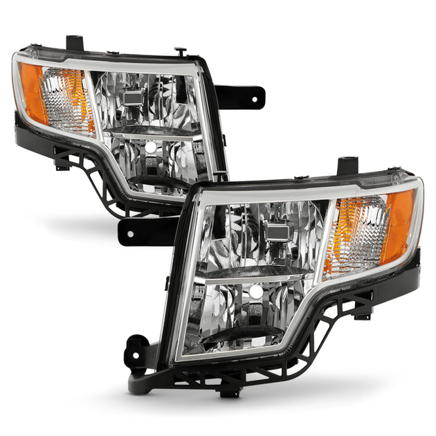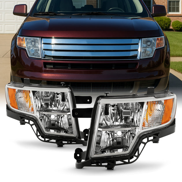 AKKON - Fits 2007-2010 Ford Edge [Halogen Type] Chrome Headlights Headlamps Pair Driver Left+Passenger Right Replacement