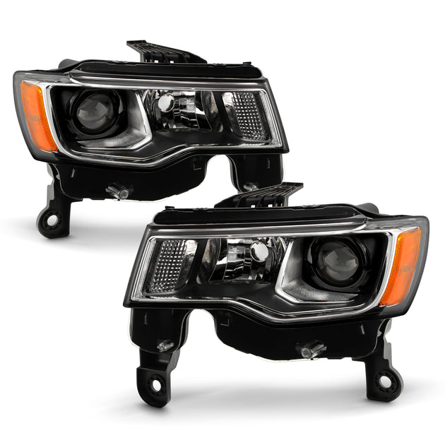 AKKON - Fits 2017-2021 Jeep Grand Cherokee [Halogen Type] Projector Chrome Headlights Pair Driver Left + Passenge Right
