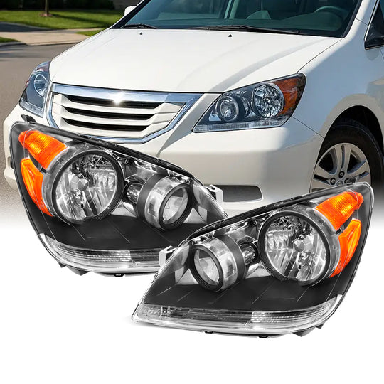 Regular price $149.99This is a 100% brand new pair of Headlights Replacement Assemblies in Midnight Black Housing With Crystal Clear Lens Compatible With: 2008-2010 Honda Odyssey Models Manufacturer Part Number: HO2502136, HO2503136,,33150SHJA51, 33100SHJA51 Color: Solid Matte Black Paint... -