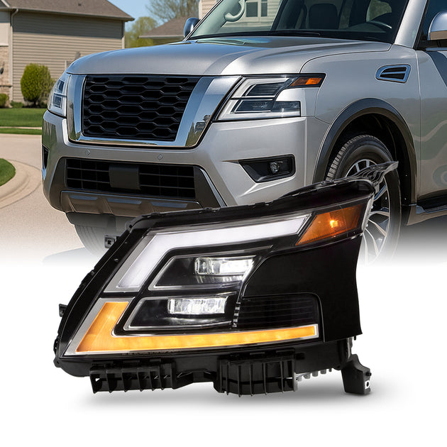 AKKON -Fit 2021-2024 Nissan Armada [FULL LED] Black Headlight Passenge Right w/ Tube DRL Running Turn Signal Replacement
