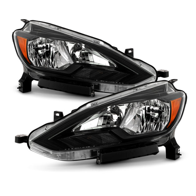 AKKON - Fits 2016-2019 Nissan Sentra OE Factory Style Halogen Headlights Black Bezel Replacement Pair