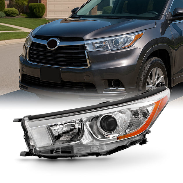 AKKON - Fits 2014 2015 2016 Toyota Highlander Chrome Projector Headlight Headlamp Driver Left Side Replacement 14 15 16