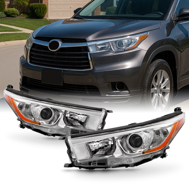 AKKON - Fits 2014 2015 2016 Toyota Highlander Chrome Projector Headlights Headlamps Pair Driver Left+Passenger Right