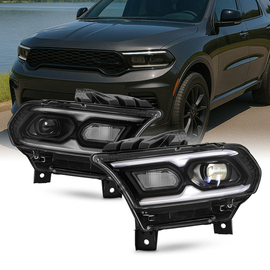 AKKON -Fit 2021-2024 Dodge Durango Black Bezel Style Projector Headlights Pair Driver+Passenger w/Halogen Signal+LED DRL