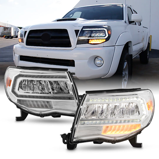 Regular price $375.99SKU: PRO-JH-TTA05-FLED-C This is a 100% brand new Pair of Headlights Replacement Assemblies in Chrome Housing With Clear Lens Compatible With: 2005-2011 Toyota Tacoma Manufacturer Part Number: ,9-P1TTA05LC Color: Light Bulb Type: Low Beam: LED Included;... -