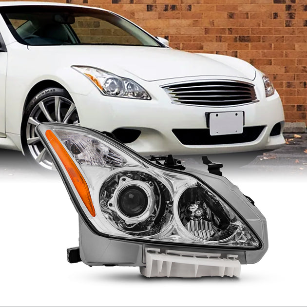 AKKON - Fits 2008-2013 Infiniti G37 2014-2015 Q60 Coupe Chrome Headlight Passenger Right Side Replacement