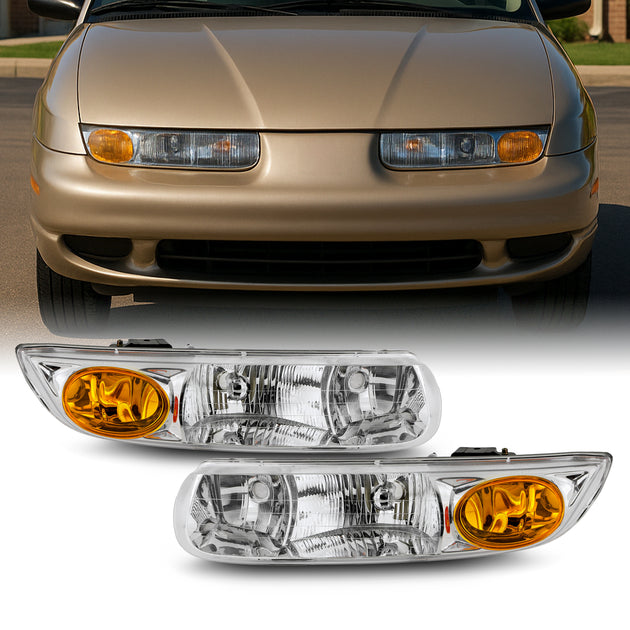 AKKON - Fits 2000 2001 2002 Saturn SC1 SC2 Coupe [Halogen Type] Chrome Headlights Pair Driver Left + Passenger Right
