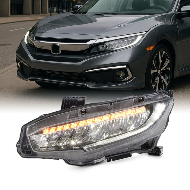 AKKON - Fit 2016 2017 2018 2019 2020 2021 Honda Civic 16-21 Touring | Sport Touring | Si | Type R [Full LED] w/DRL Headlight Headlamp OE Style Chrome Driver Left Side Assembly