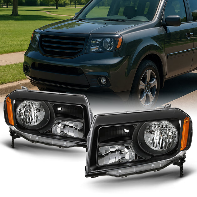 AKKON - Fits 2012 2013 2014 2015 Honda Pilot [Halogen Type] Black Headlights Pair Driver Left+Passenger Right Replacement