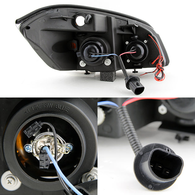 AKKON - For Cobalt G5 Pursuit Black Bezel Dual Halo Ring DRL Daylight LED Strip Design Projector Headlights Set